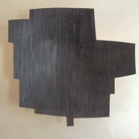 The enlarged form of a faceted stone and bezel rests on the wall like a pendant hanging against the chest. An internal counter-weight mechanism (similar to an old school window sash) allows this jewel to slide up and down the wall.